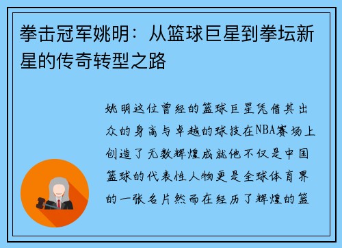 近年来,随着学生对时尚与运动的双重需求不断增加,各大品牌纷纷推出适合年轻人的产品。姚明作为中国篮球的象征,同时也在时尚领域有着深远的影响力,他携手耐克推出全新书包系列,将运动与时尚完美融合,为学生提供更为丰富的选择。在这篇文章中,我们将从四个方面详细探讨这一系列书包的设计理念、功能特点、市场反响及其对学生生活的积极影响。通过这些分析,可以更深入地理解姚明和耐克如何共同助力学生在追求时尚与运动之间找...